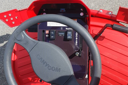 Nastavitelný volant, mechanické páky spínání pohonu 4x4 a uzávěrky diferenciálu, zapínání sečení, počítadlo motohodin.