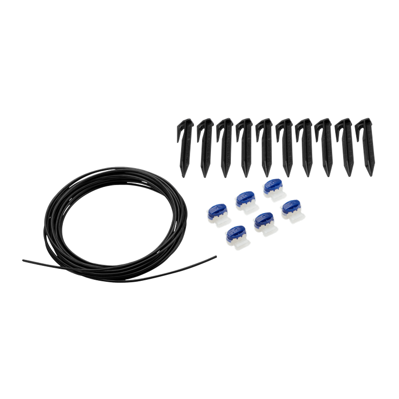 GARDENA sada pro opravy je ideální pro upevnění ohraničujícího vodiče a pro provádění drobných úprav na žací ploše. Skládá se z 5 metrů ohraničujícího vodiče, 10 háků pro ukotvení kabelu do země a 6 konektorů pro pohodlné propojení existujícího vodiče s novým.